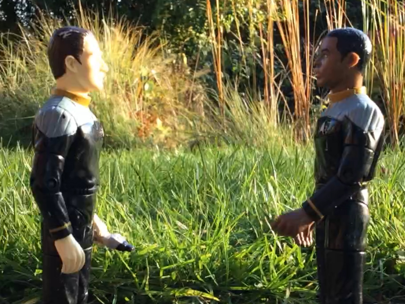 Bevor wir jedoch weitergemacht haben, entschied ich, einen Film zu machen. Dieser sollte ca. 20-30 Minuten lang werden. Ich arbeitete ewig an einem Drehbuch, bastelte ein rudimentäres Storyboard und bastelte an einem Set für die Brücke des Schiffes. Data hätte das Kommando über ein Schiff der Akira Klasse übernommen und mit einigen seiner alten Enterprise Kollegen auf eine Mission gehen sollen.